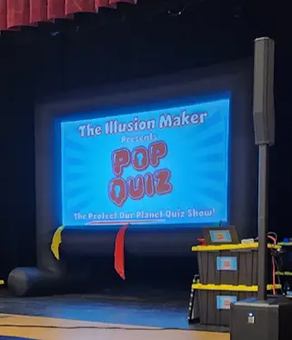 The Illusion Maker’s Environmental Show combines the excitement of a magic show with the energy of a quiz show, creating an engaging experience where every student participates. As students help perform the magic, they also discover practical, age-appropriate ways to care for the planet.